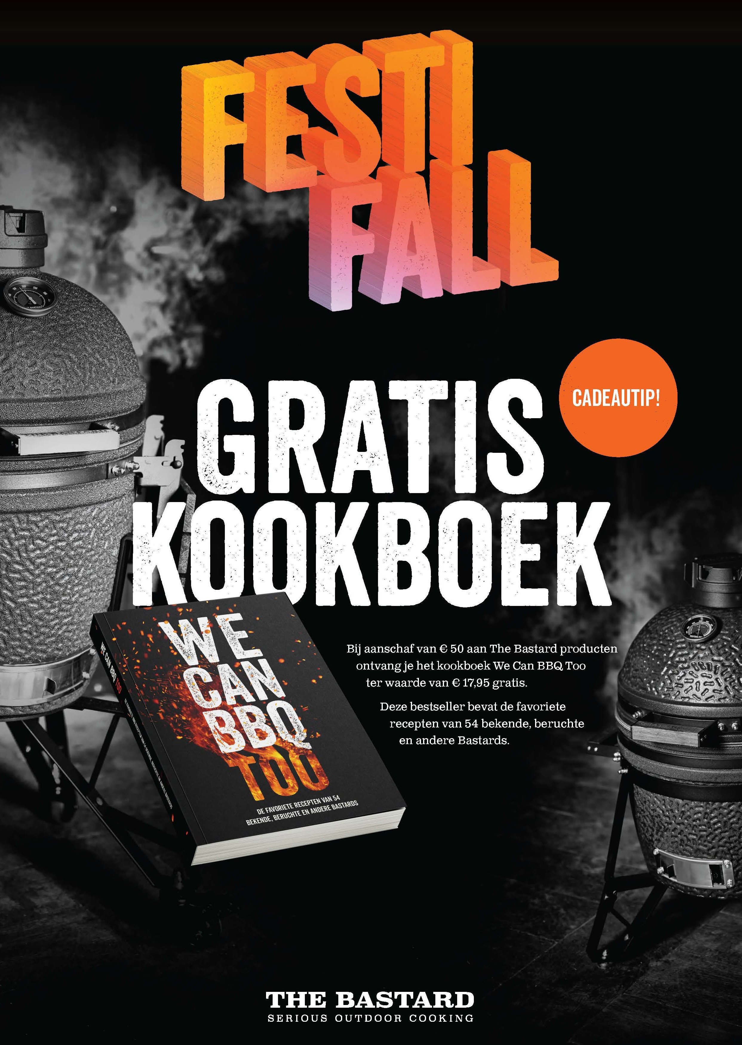 Ter inspiratie krijg je tot en met 31-12-2021 het kookboek We Can BBQ Too gratis bij besteding van € 50,00 aan The Bastard producten.
